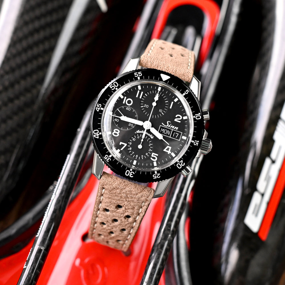 MiLTAT 20mm或22mm磨面牛皮穿孔透氣賽車錶帶沙褐色 計時碼錶絕配