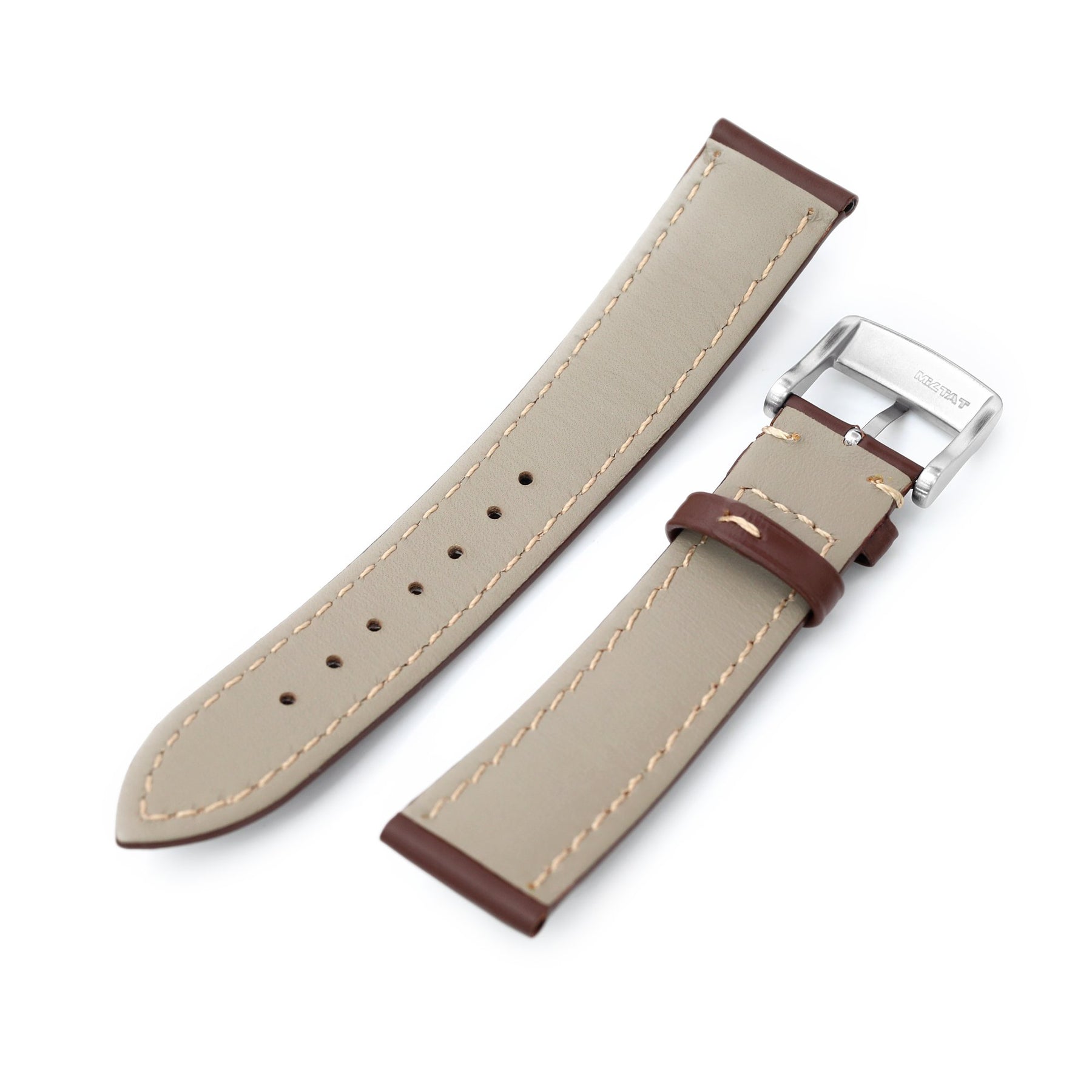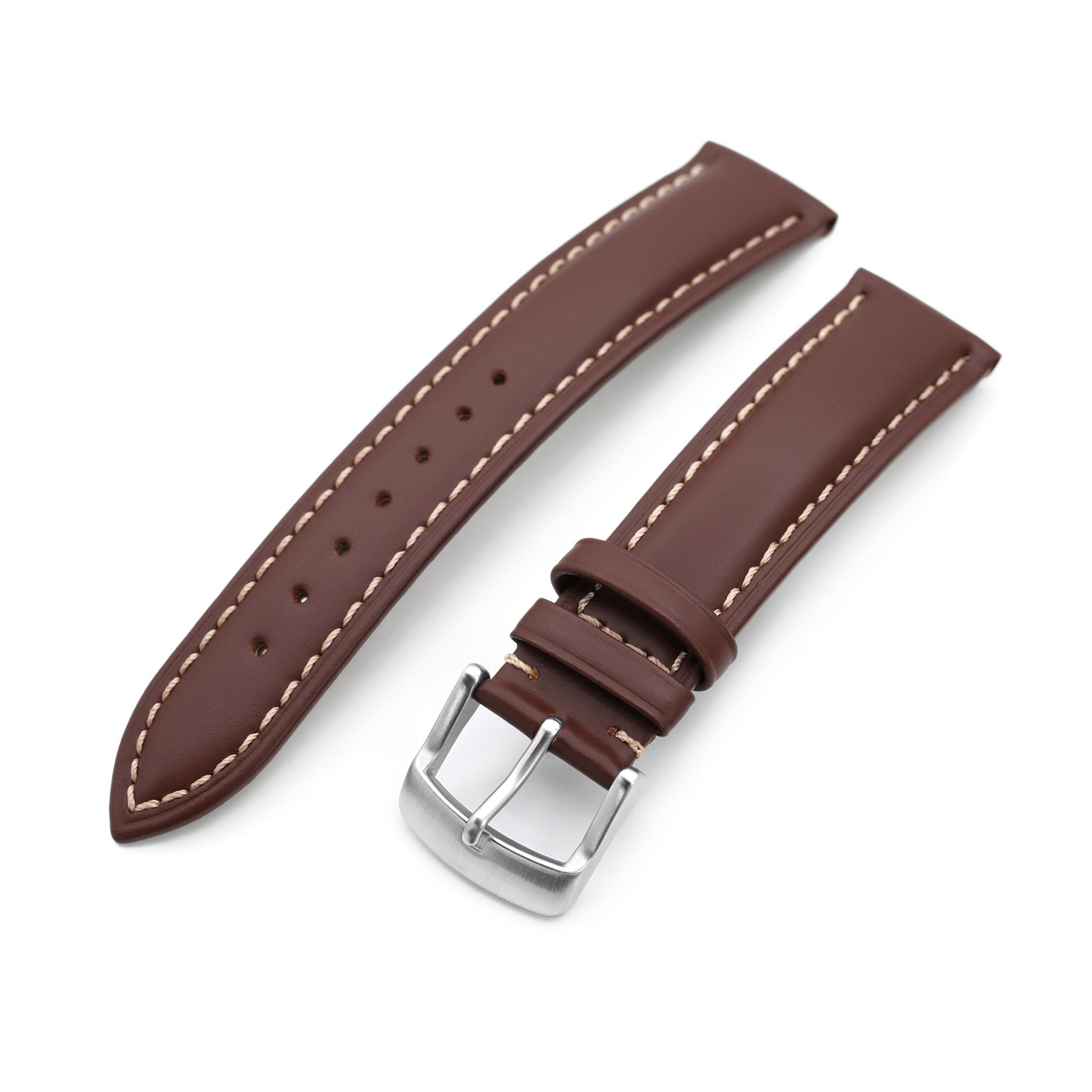 20mm Pecan Brown Tapered Smooth Leather Watch Band, Brushed Buckle Strapcode Watch Bands