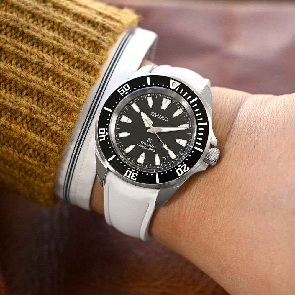 優質 FKM34 彈性半彎曲頭耳 白色快拆FKM橡膠錶帶, 不鏽鋼蝴蝶扣