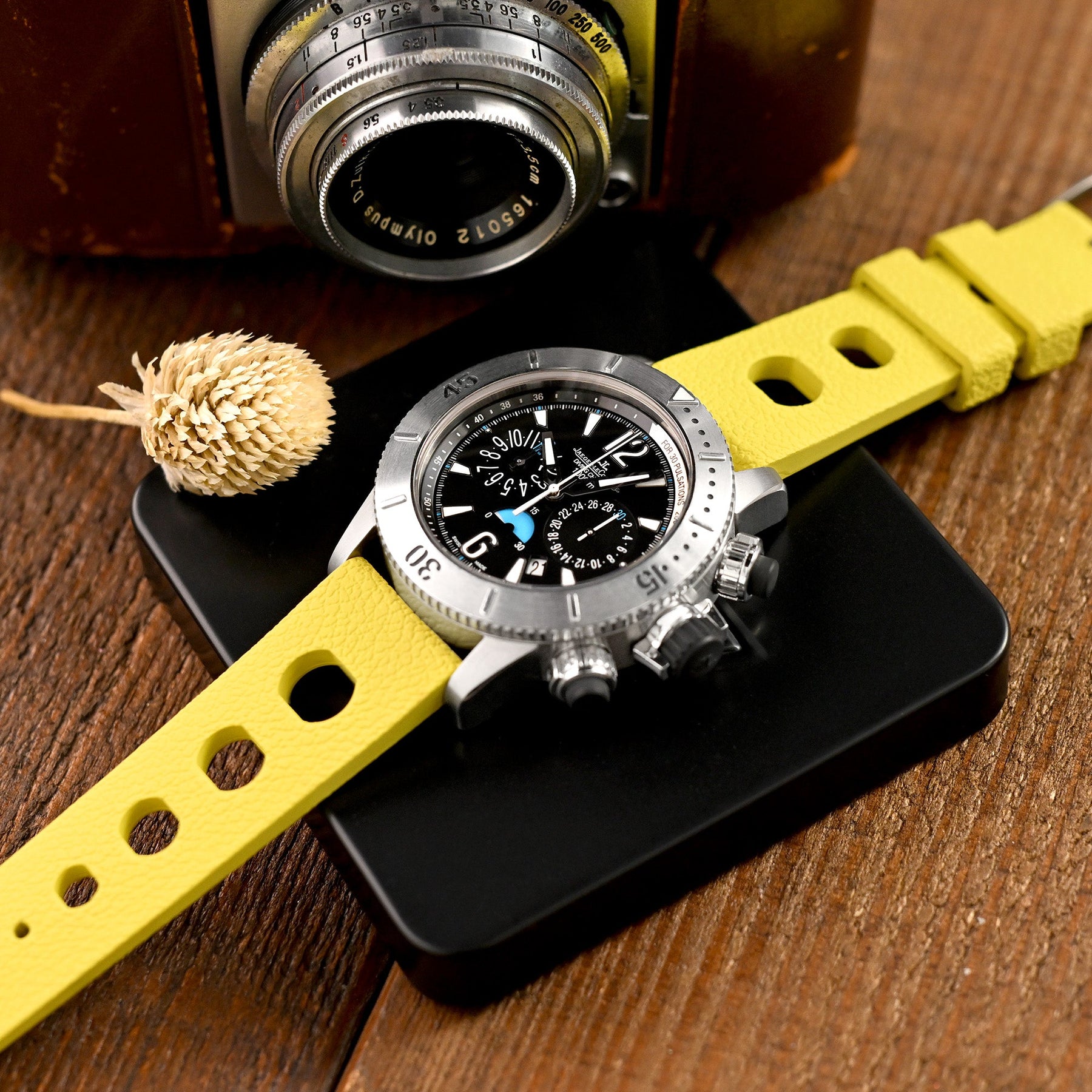 20mm or 22mm FKM36 Yellow Large Holes Rally FKM Quick Release Rubber watch band Strapcode watch bands