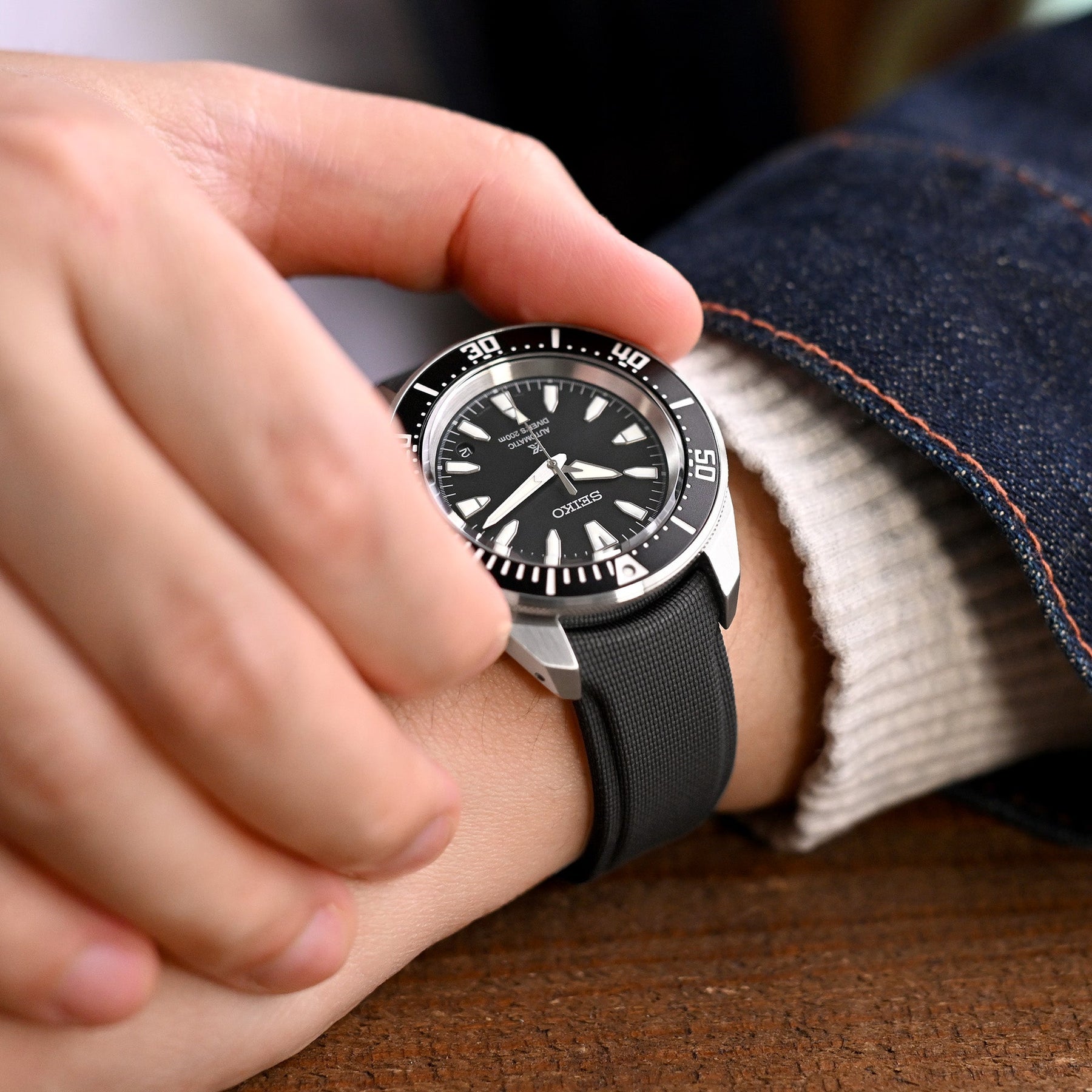 氟碳橡膠(FKM)材質:FKM(Fluoroelastomer)氟碳橡膠是一種具備極高密度的高性能材料,專為承受高溫與化學環境等嚴苛條件而設計。其卓越的防水性能與對極端環境的適應力,使其深受潛水員與冒險愛好者的青睞。對於您的潛水腕錶(例如 Seiko 精工 等專業時計)而言,這無疑是市面上最優質的橡膠錶帶替換選擇之一。
