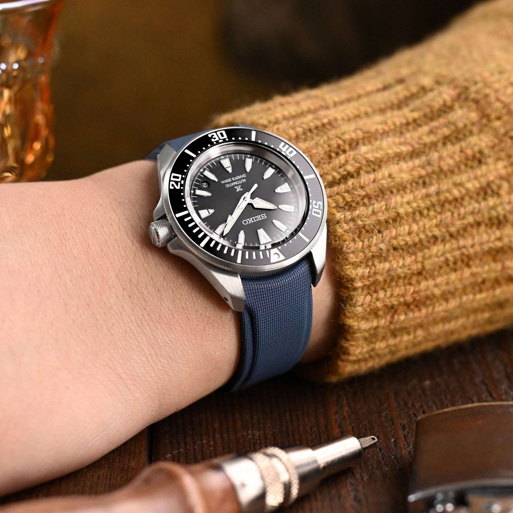 錶帶配備頂級 316L 精鋼蝴蝶扣,提供穩固的彈簧扣合機能,長度則可透過簡單裁剪輕鬆調整。我們提供五款精心調配的色彩與多種錶耳寬度供您選擇,能完美襯托您的愛錶(如 Seiko 精工等錶款)與個人不凡品味。