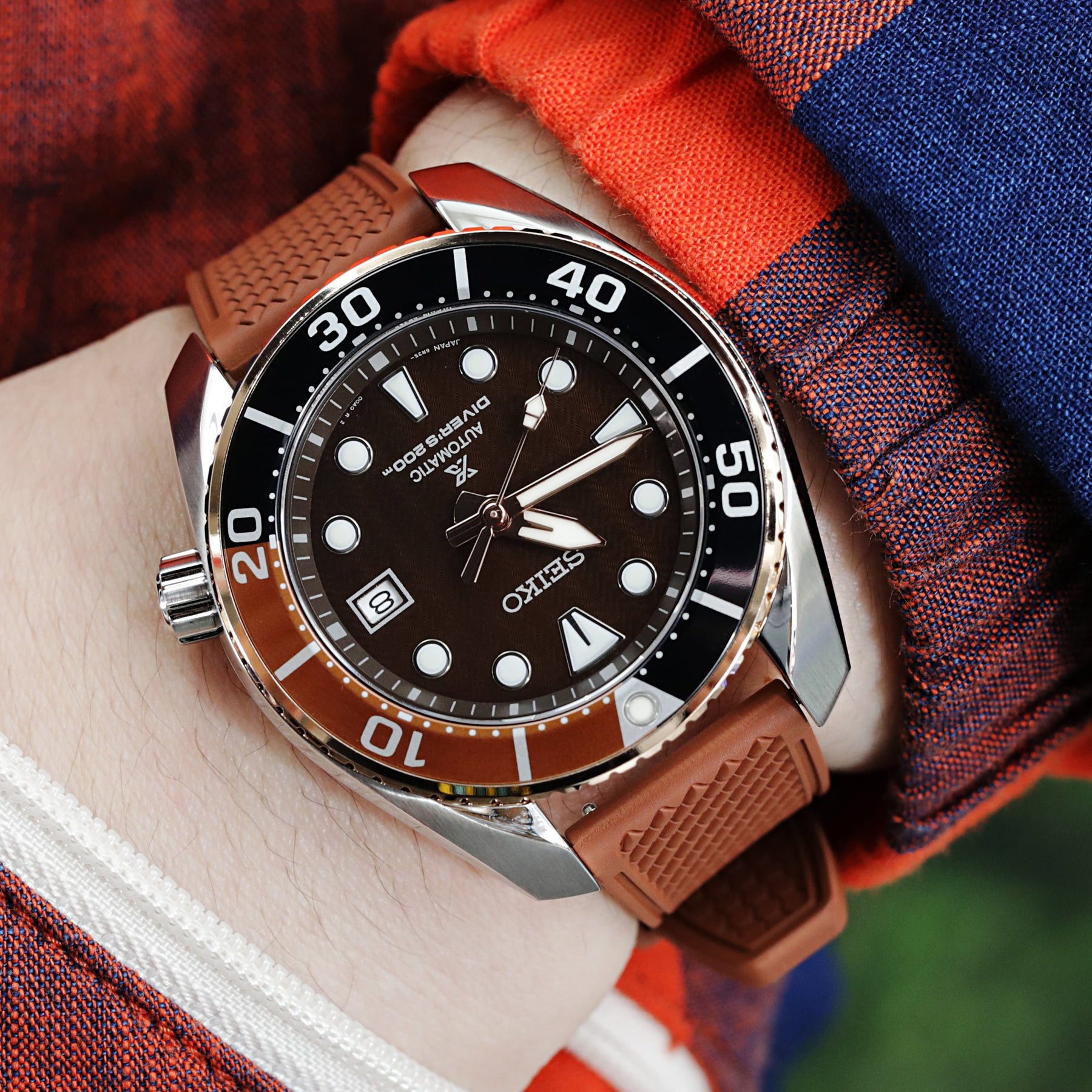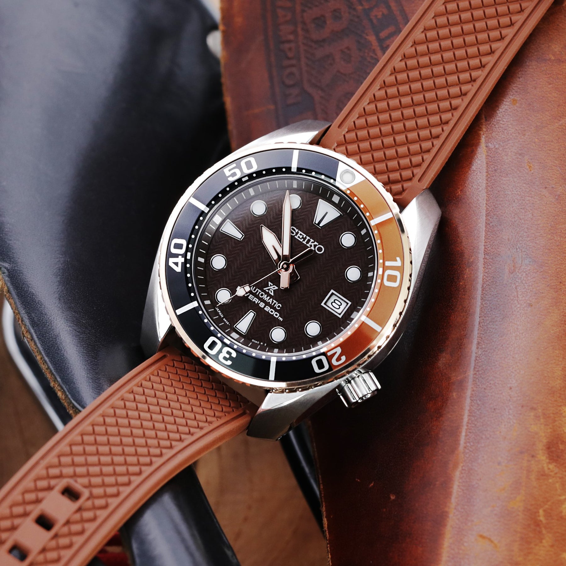 HONEY Brown FKM Quick Release Rubber Strap, 20mm Strapcode Watch Band