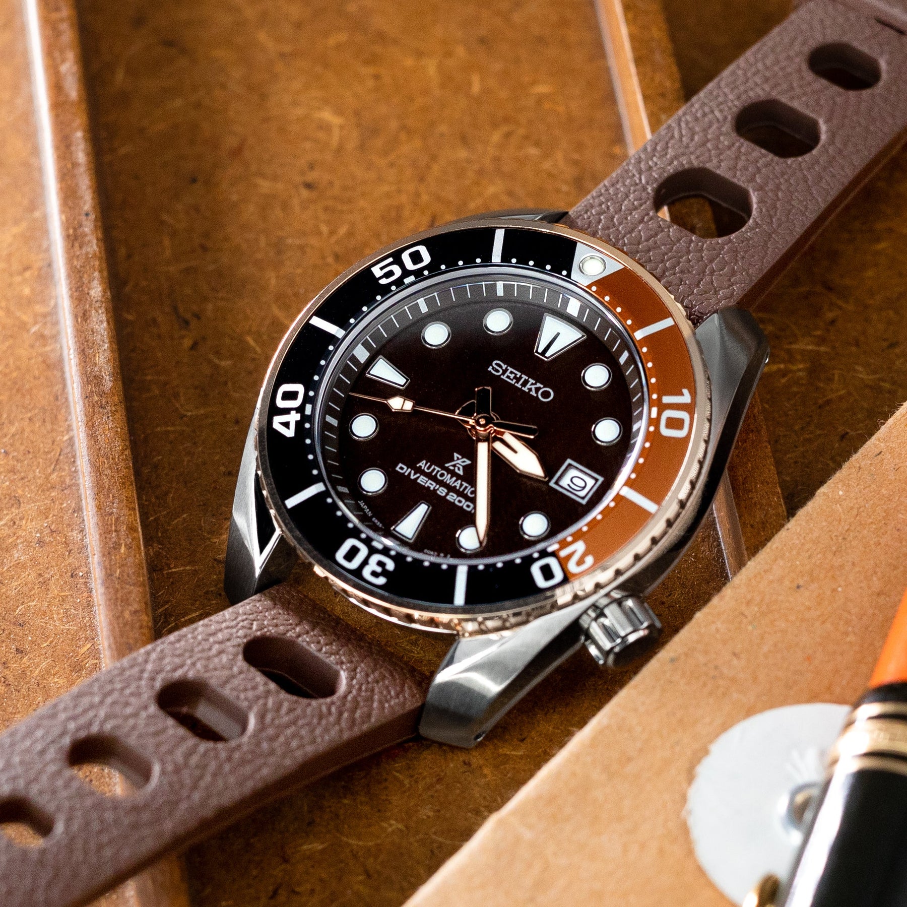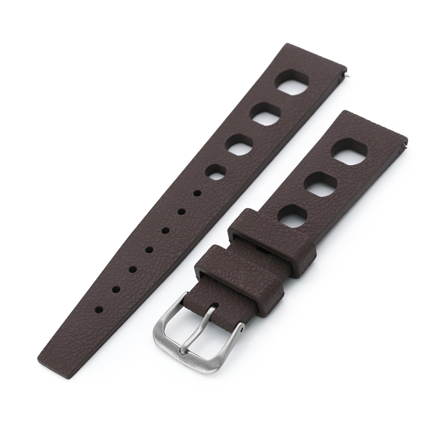 20mm Brown Large Holes Rally FKM Quick Release Rubber watch band