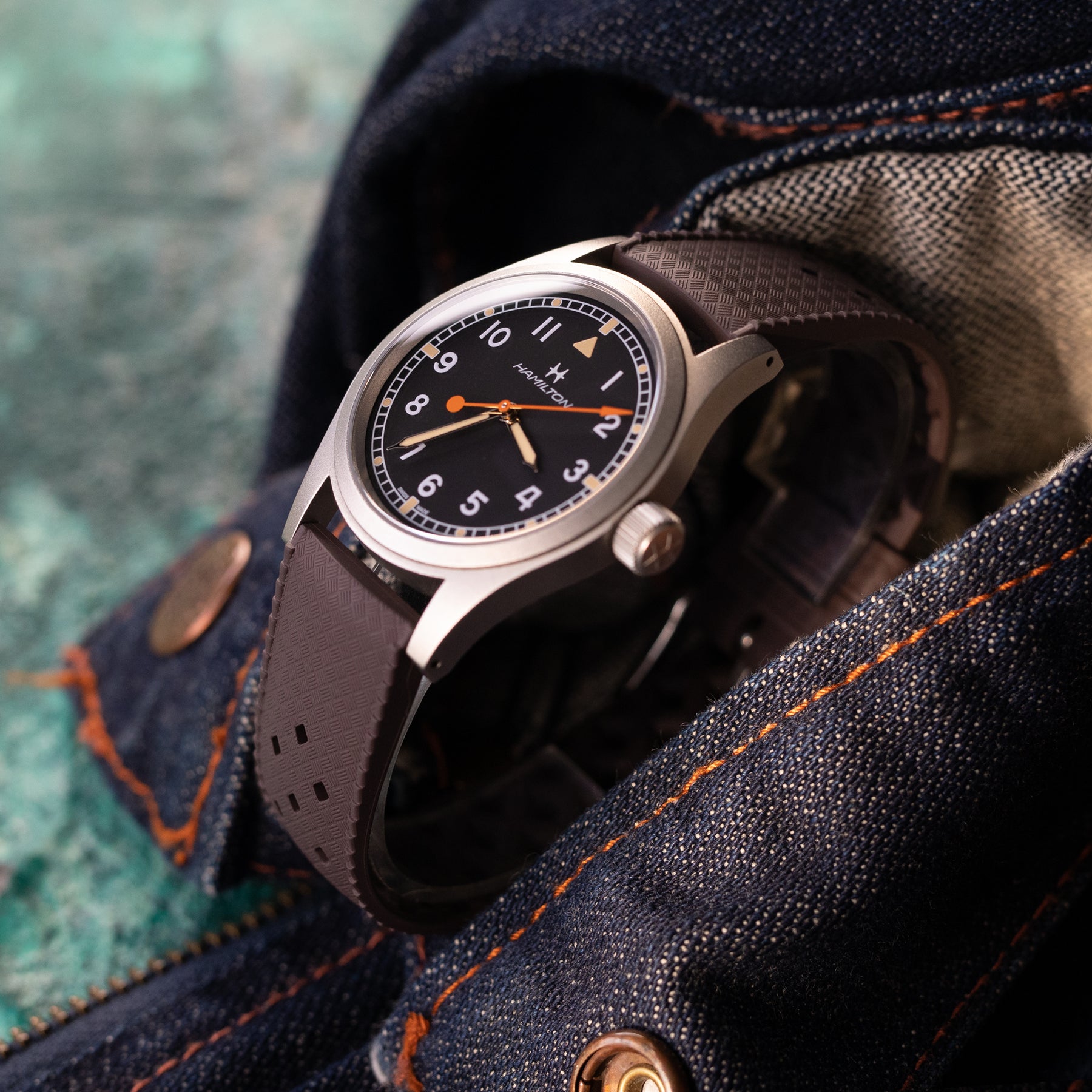 20mm Quick Release Tropical-Style FKM rubber watch strap, Dark Brown Strapcode watch bands