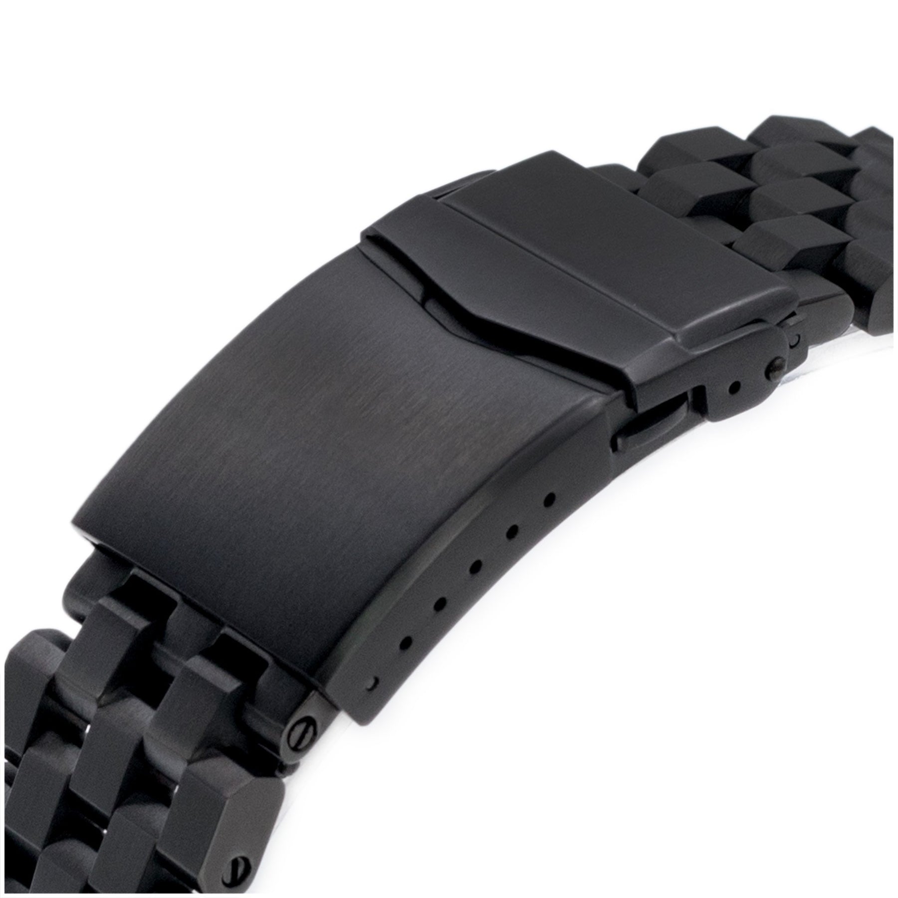 錶扣款式 / 扣飾面 : 316L鋼 V扣- V形安全片,按鍵式雙鎖潛水錶帶扣/ DLC"類金剛石碳"塗層