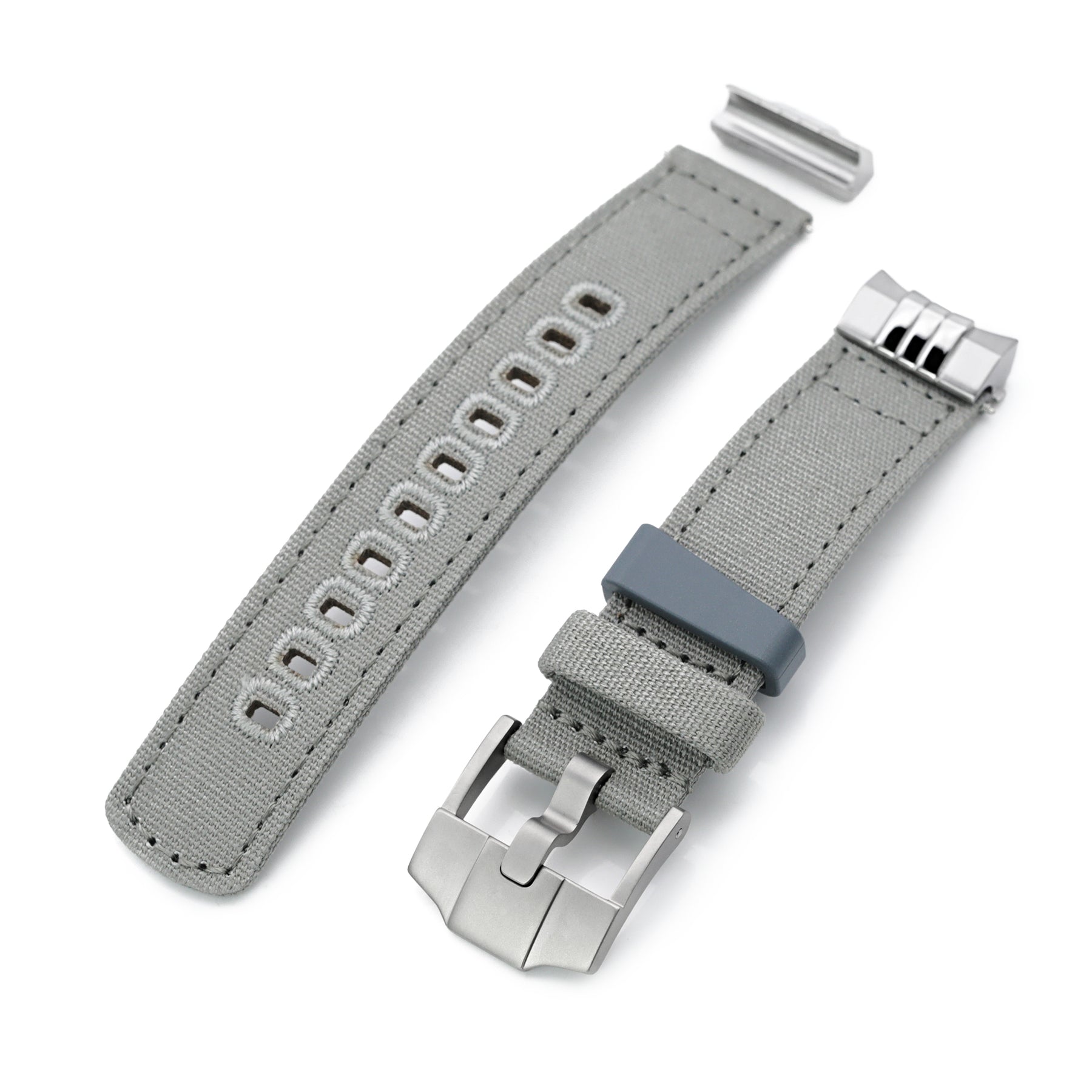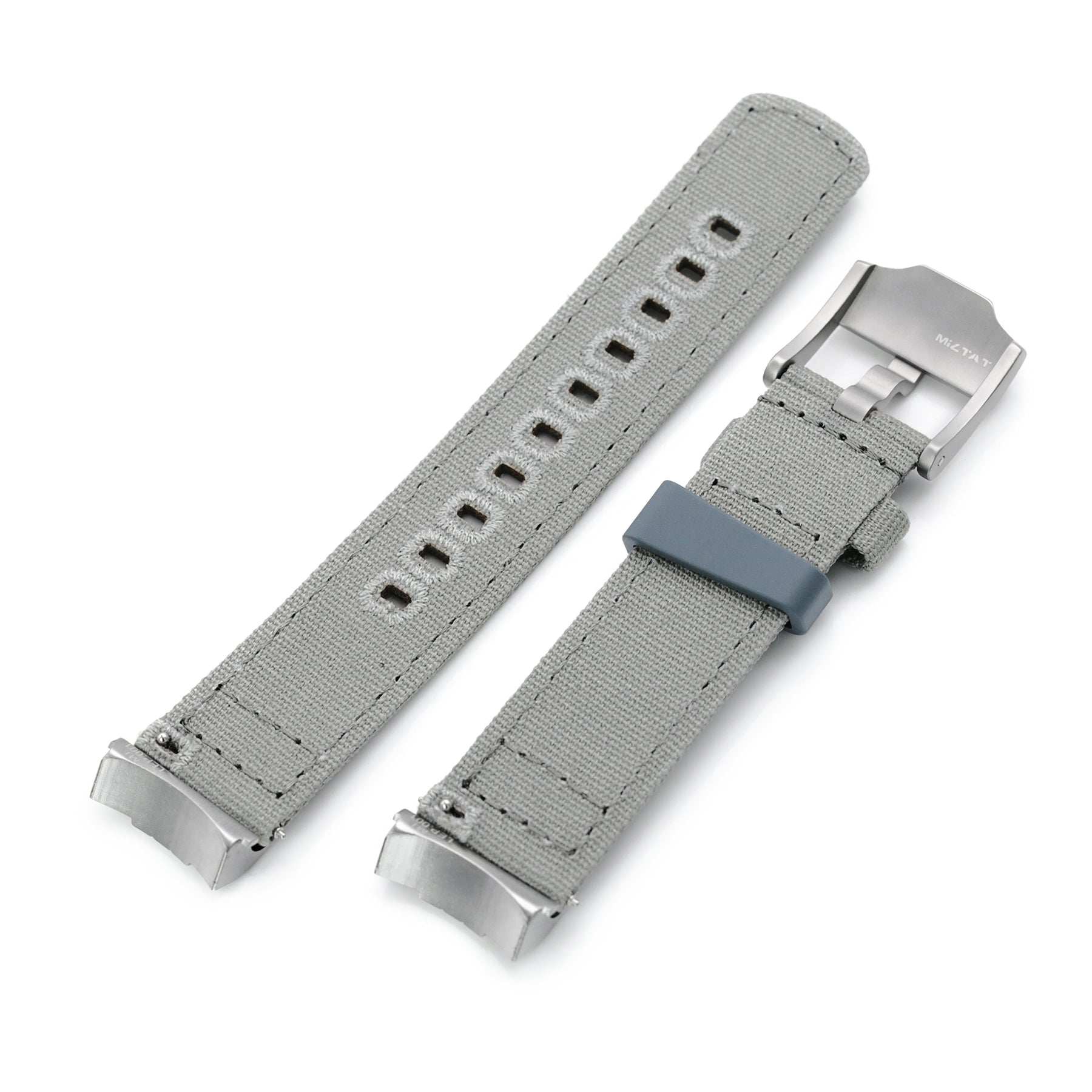 簡介 : 快拆錶帶 - 帆布錶帶配有特定的實心彎曲鋼粒尾端附件,旨在作為 Seiko Sumo 精工小MM選定型號的縫隙填充物。 受瑞士品牌著名計時碼表的啟發,MiLTAT現在推出一款新的錶帶不銹鋼端頭,指在填補精工小MM錶殼與錶帶連接間之空心間隙。這彎曲鋼粒尾端附件可以與我們選擇的錶帶系列配對,並重新創造既雅觀又令人欣喜的過度性。這帆布錶帶是雙層設計再用粗線縫合的,是一種快速安裝的快速釋放錶帶,採用兩種不同材料制作錶帶環,及結實的316L不銹鋼表扣,表面經過噴砂處理。